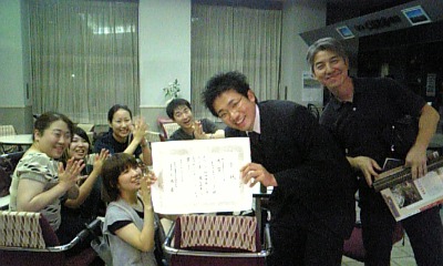 同じく盛岡市民演劇賞の舞台美術部門賞を受賞なさった長内先生(腕呼争場の舞台美術を担当してくださいました☆)と、