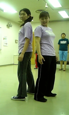 小川千晶と池田幸代の稽古シーン。とてもいい場面です。でもこうやって写真で見ると、Tシャツの色がお揃いなこともあり、アイドルユニットに見えなくもない。