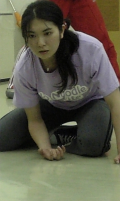 真剣な顔つきで稽古をする小川千晶。イイ顔してます。