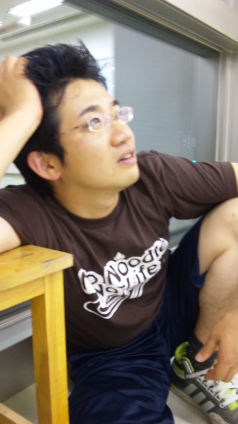 ジャージ姿もカッチョイイ!ちなみに中は、青の腕呼Tシャツ。