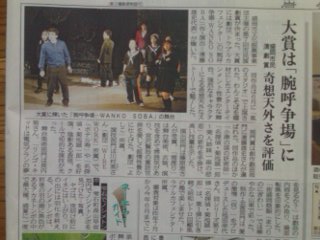 今朝の岩手日報朝刊で腕呼争場が盛岡市民演劇大賞を受賞したと報じられました!