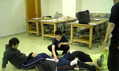 そんな三兄弟のうちのひとり、遠藤さんですが、さきほど稽古前にたいへんな目にあいました。