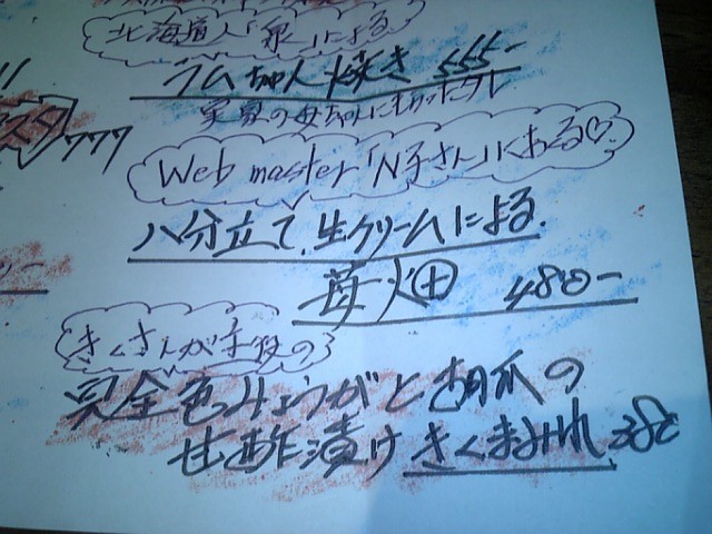 テーブルの上には、通常のメニューに加え、こんなかんじのおすすめメニューが。
