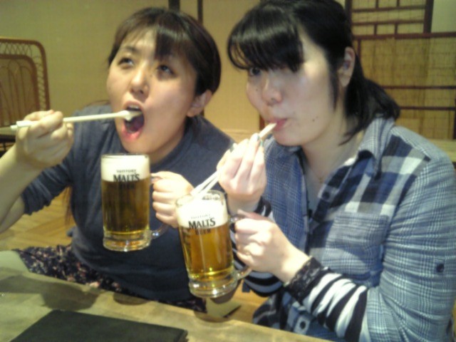アルコール摂取組(高野さん&きくさん)は、気分だけでも味わおうと、