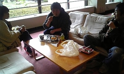 でも遠藤さんは、ばんさん(福士晴彦・装置)に貰った誕生日プレゼント「全国制覇のストラップ」を携帯に通すのに必死。