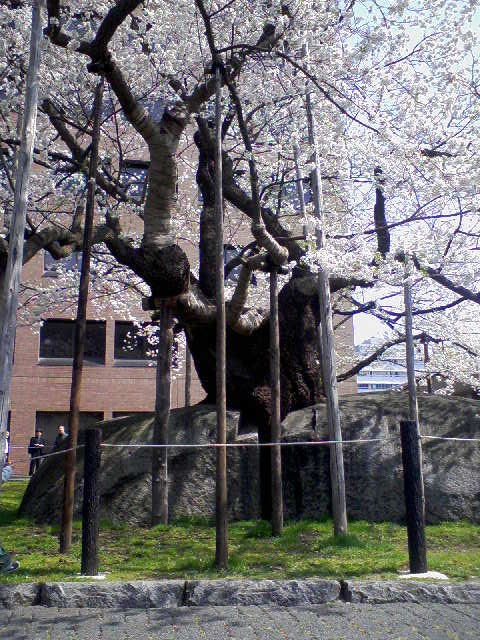 この桜が年々石を割り、今では見事な花を咲かせるようになった。」