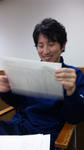 脚本のあまりのおもしろさにニヤっとしたカンノさん。